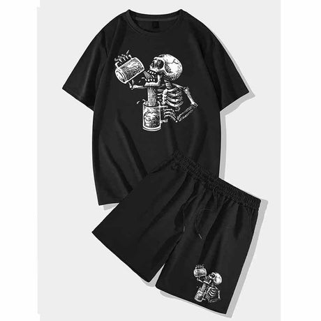 Drunk Skull Short Sleeve T-shirt and Shorts Set