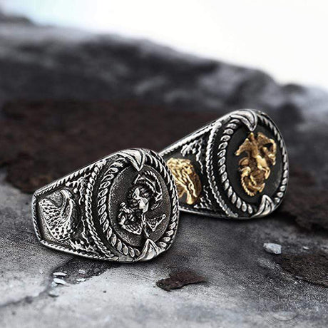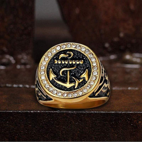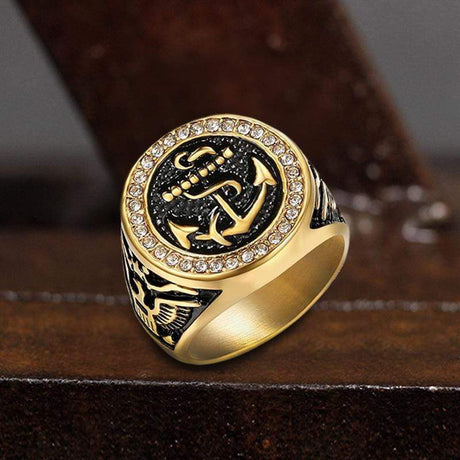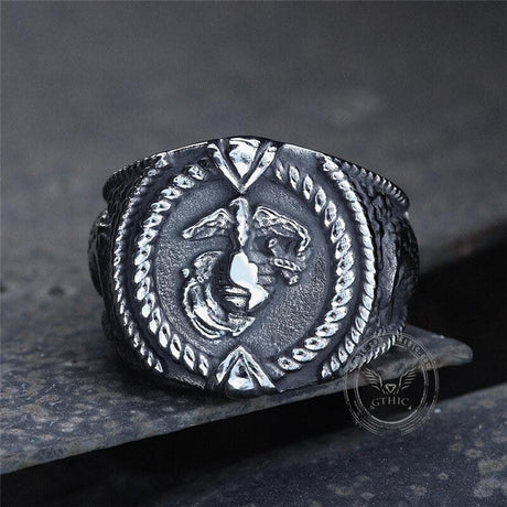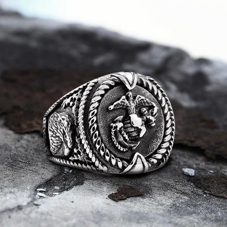 Eagle Globe Anchor Stainless Steel Marine Ring