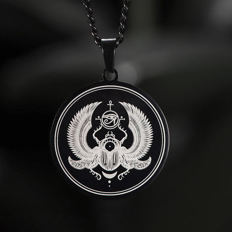 Egyptian Scarab Eye of Horus Stainless Steel Ne...