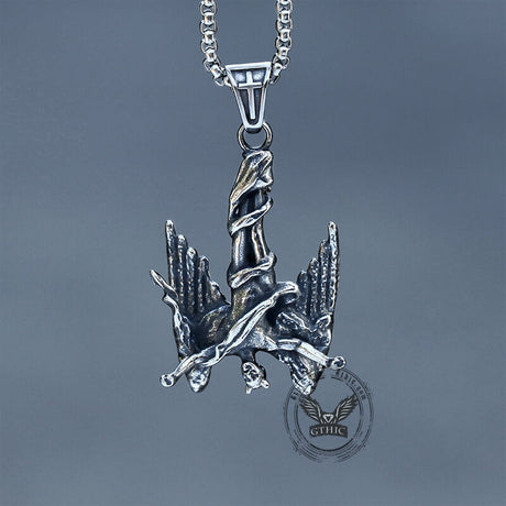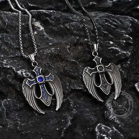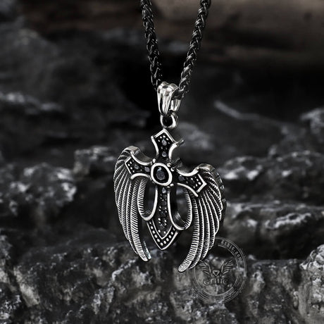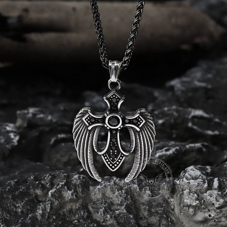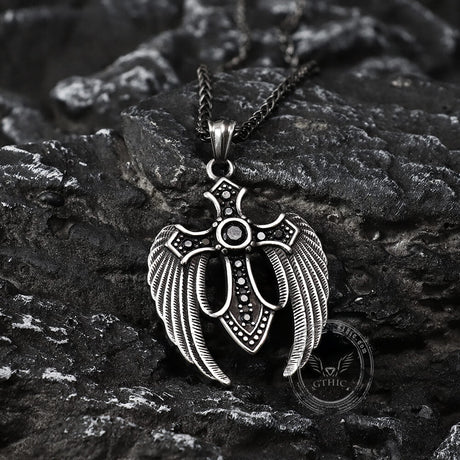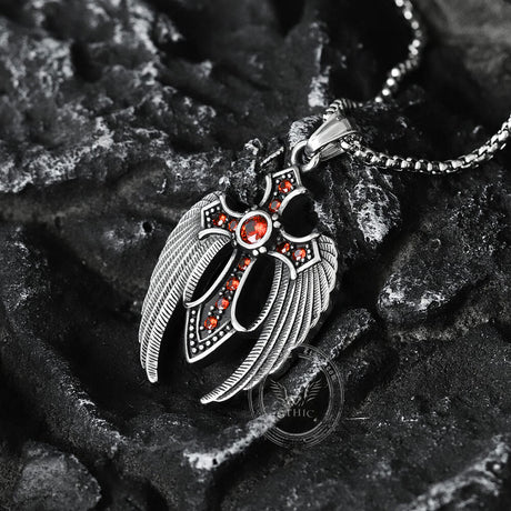Fallen Angel Wings Stainless Steel Gem Pendant