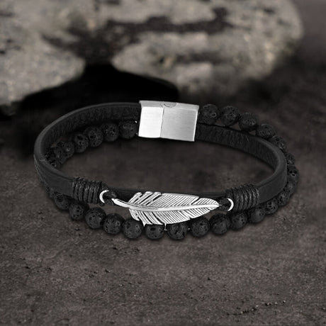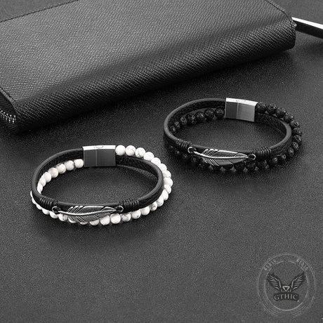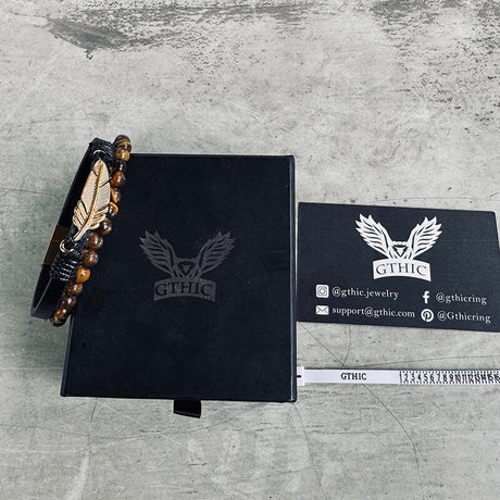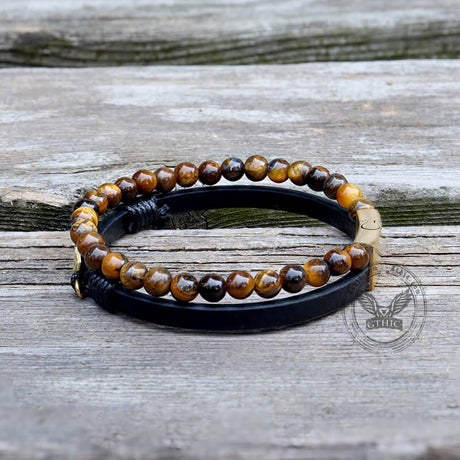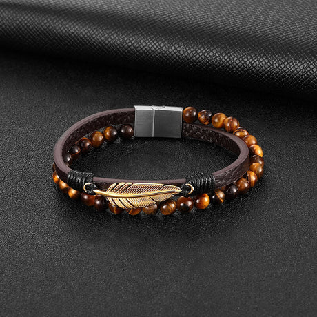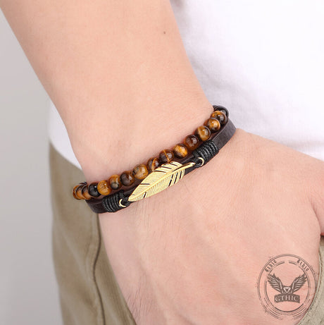 Feather Tiger’s Eye Leather Beaded Bracelet