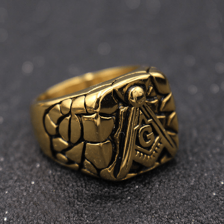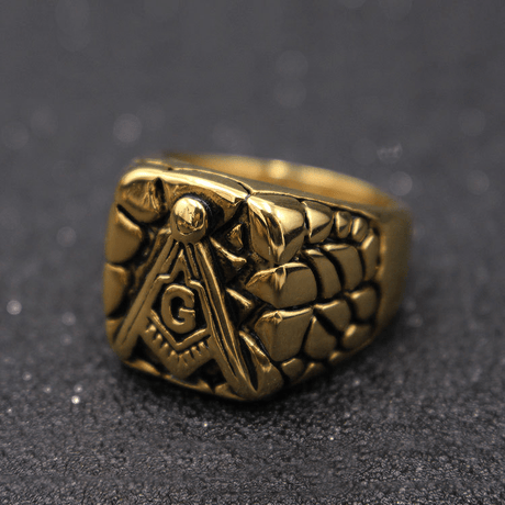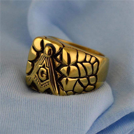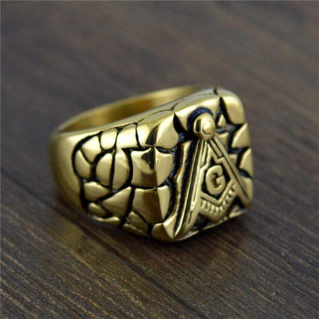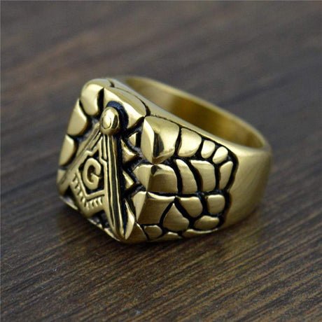 Gold Plated Freemason Stainless Steel Masonic Ring