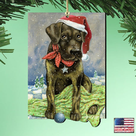 Flurries Fetch and Fun Santa Dog Wooden Refrige...