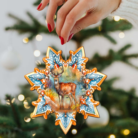 Forest Elk Snowflake Wooden Ornaments by G. Deb...