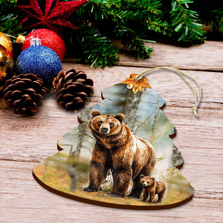 Forest Grizzly Bond Tree Wooden Ornaments by G....
