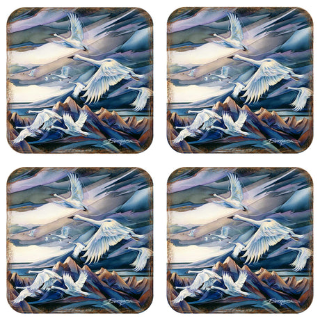 Flying Swans Wooden Cork Coasters Gift Set of 4...