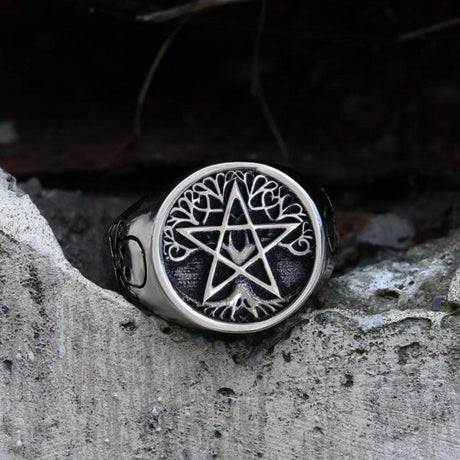 Pentagram Tree of Life Stainless Steel Viking Ring