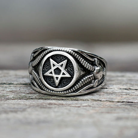 Pentacle Stainless Steel Skull Ring