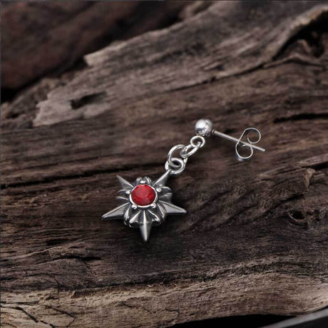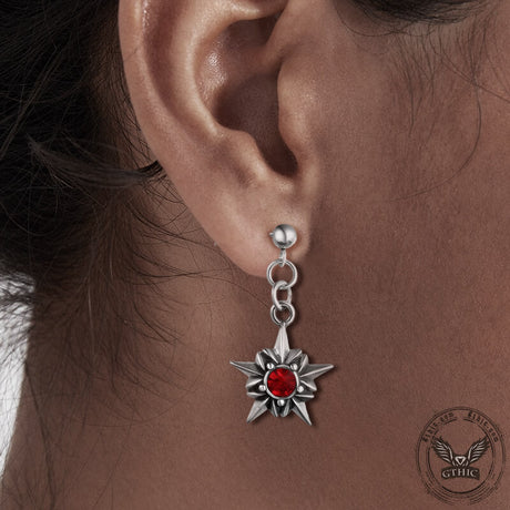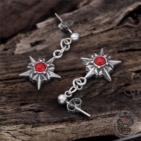 Pentagram Red Gemstone Stainless Steel Stud Ear...