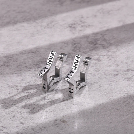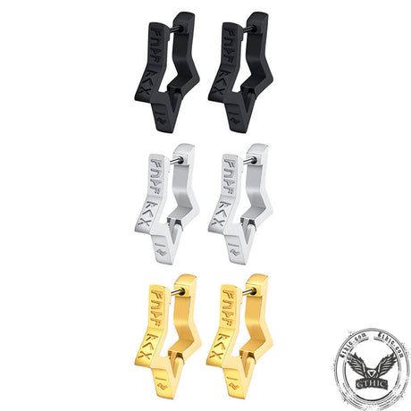 Pentagram Viking Rune Stainless Steel Stud Earr...
