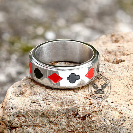 Poker Card Stainless Steel Spinner Ring