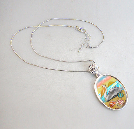Pelicans Birds at Sea Silver Plated Mother of P...