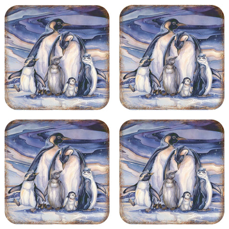 Penguins Wooden Cork Coasters Gift Set of 4 by ...