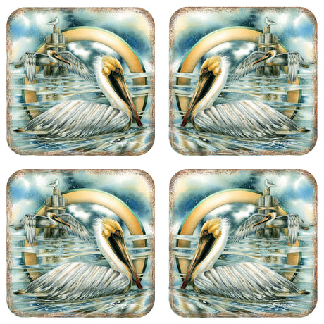 Pelicans Wooden Cork Coasters Gift Set of 4 by ...