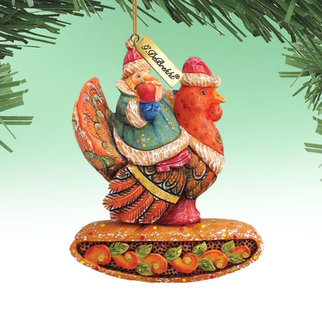 Santa Rooster Wooden Ornaments by G. DeBrekht -...