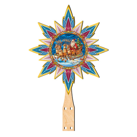 Santa on the Sleigh Star Tree Topper Wooden Dec...