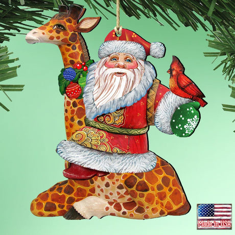 Santa On Giraffe Wooden Ornaments by G. DeBrekh...