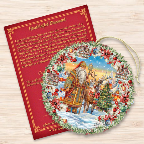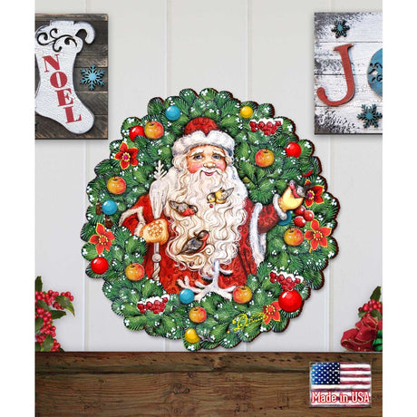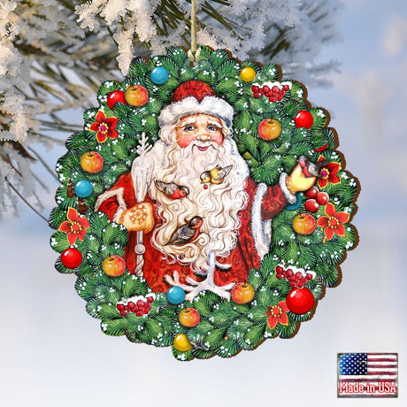 Santa Wreath with Birds Wooden Ornaments by G. ...