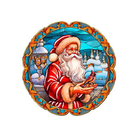 Santa with Red Cardinal Holiday Wooden Ornament...
