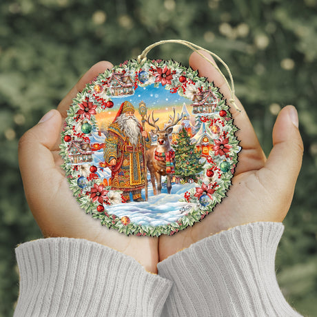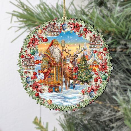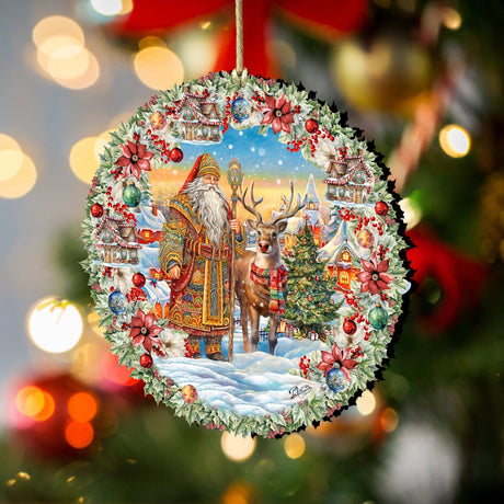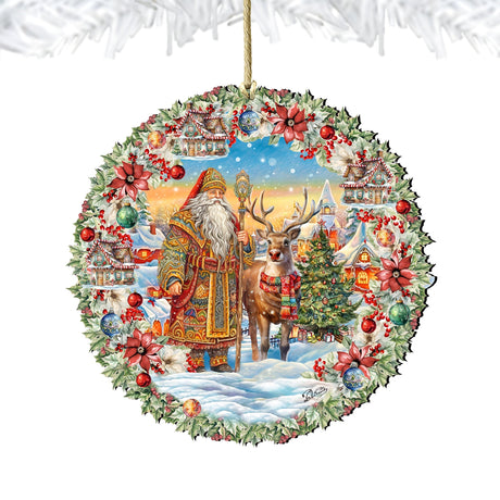 Santa with Reindeer Wooden Ornaments by G. Debr...