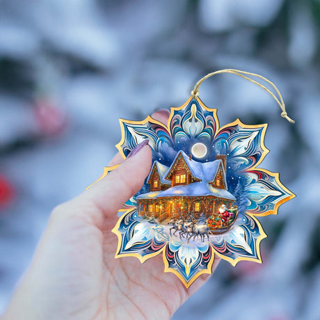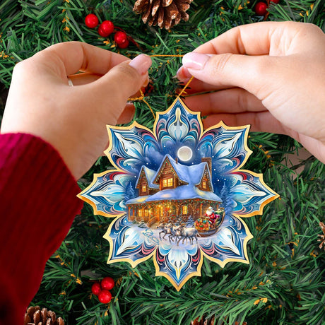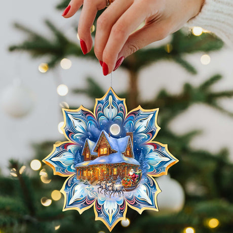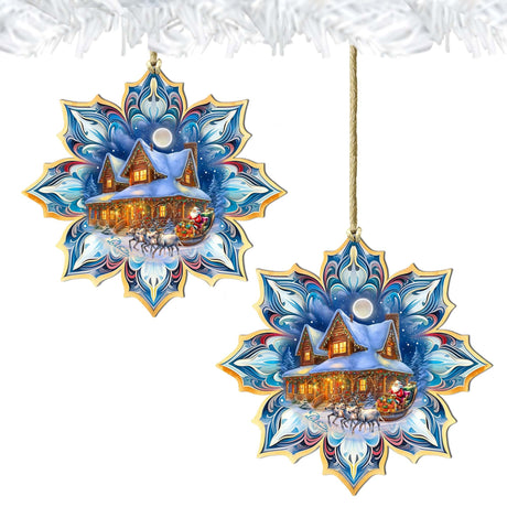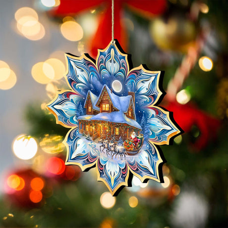 Santa's Cottage Snowflake Wooden Ornaments by G...
