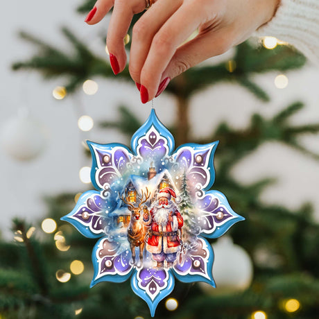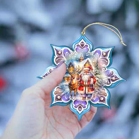 Santa with Reindeer Snowflake Wooden Ornaments ...