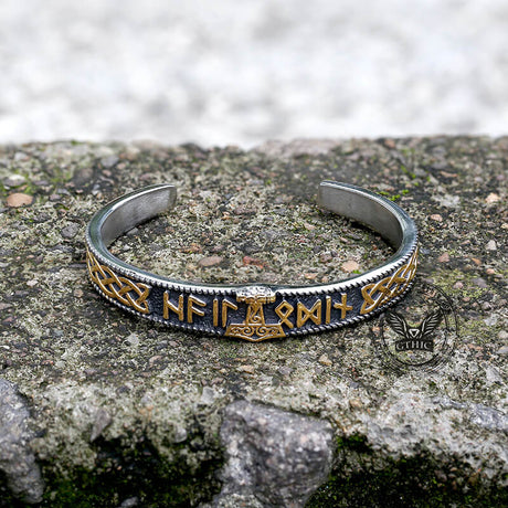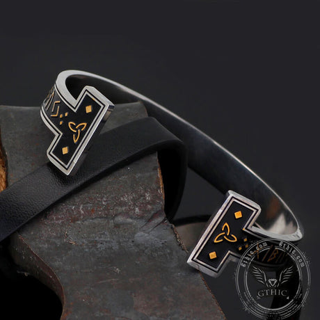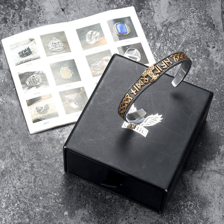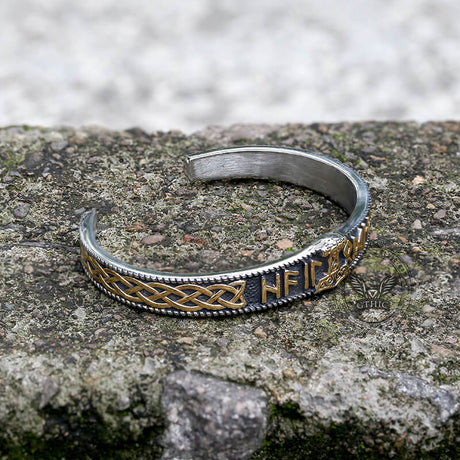 Celtic Knot Runes Stainless Steel Viking Cuff B...