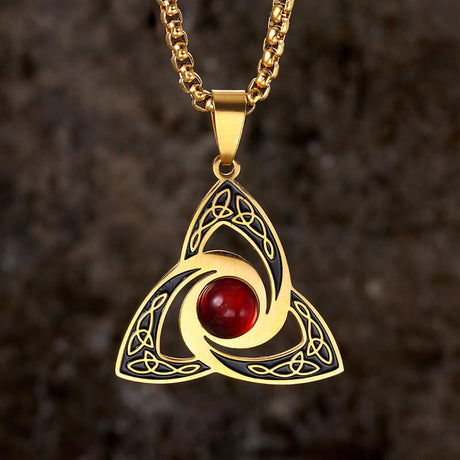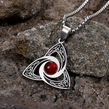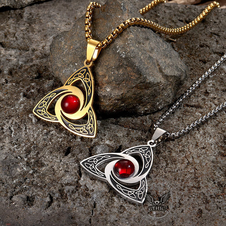 Celtic Knot Red Gemstone Stainless Steel Necklace