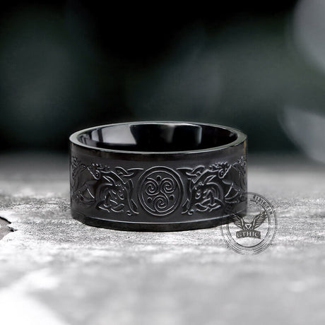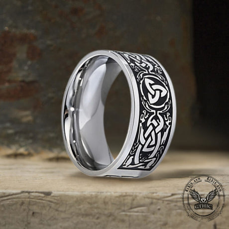 Celtic Wolf Triquetra Stainless Steel Viking Ring