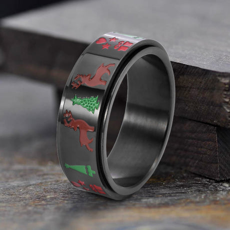 Christmas Tree Elk Stainless Steel Spinner Ring