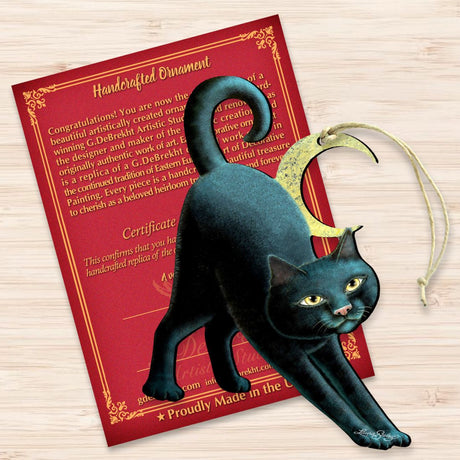 Spooky Night Black Cat Wooden Ornaments by Laur...
