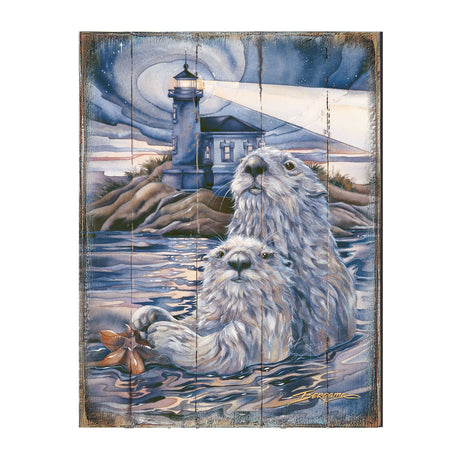 Starlight Otter Lighthouse Wooden Wall Art by J...