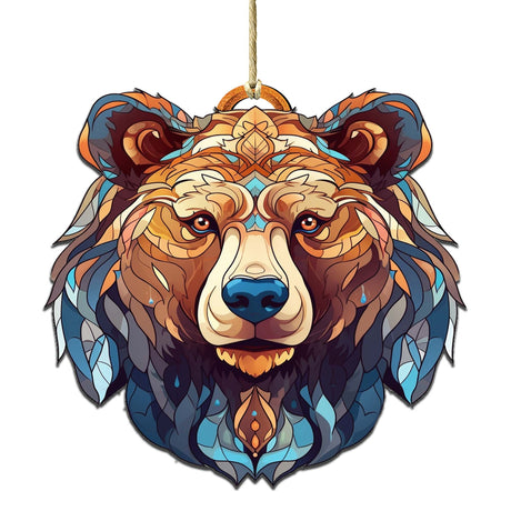 Stained Glass Design Bear Face Wooden Ornaments...