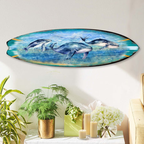 Whale's Harmony Surfboard Coastal Wall Art by G...