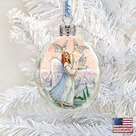 White Doves Angel Glass Ornament by G. DeBrekht...