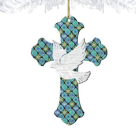 White Doves Cross Wooden Ornaments by G. DeBrek...
