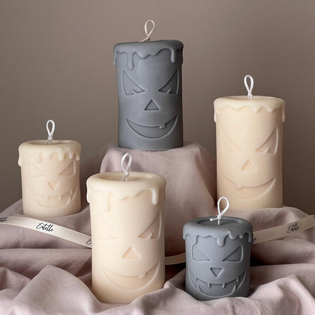 Scary Pumpkin Ghost Face Pillar Candle