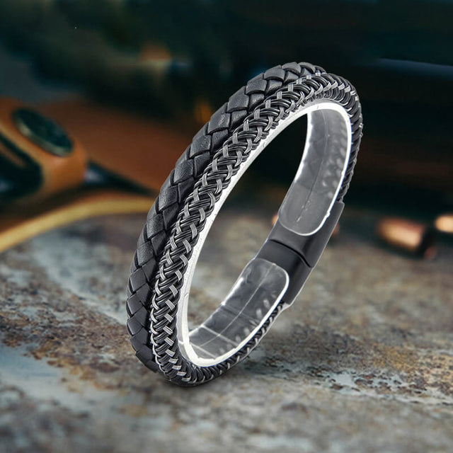 Double Braided Leather Stainless Steel Bracelet - Stainless Steel & Leather / 21 cm est en rupture de stock et sera expédié dès qu’il sera de retour en stock.
