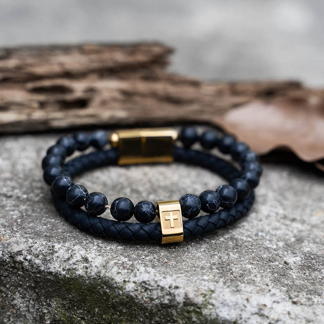 Double Layer Cross Turquoise Stainless Steel Bracelet