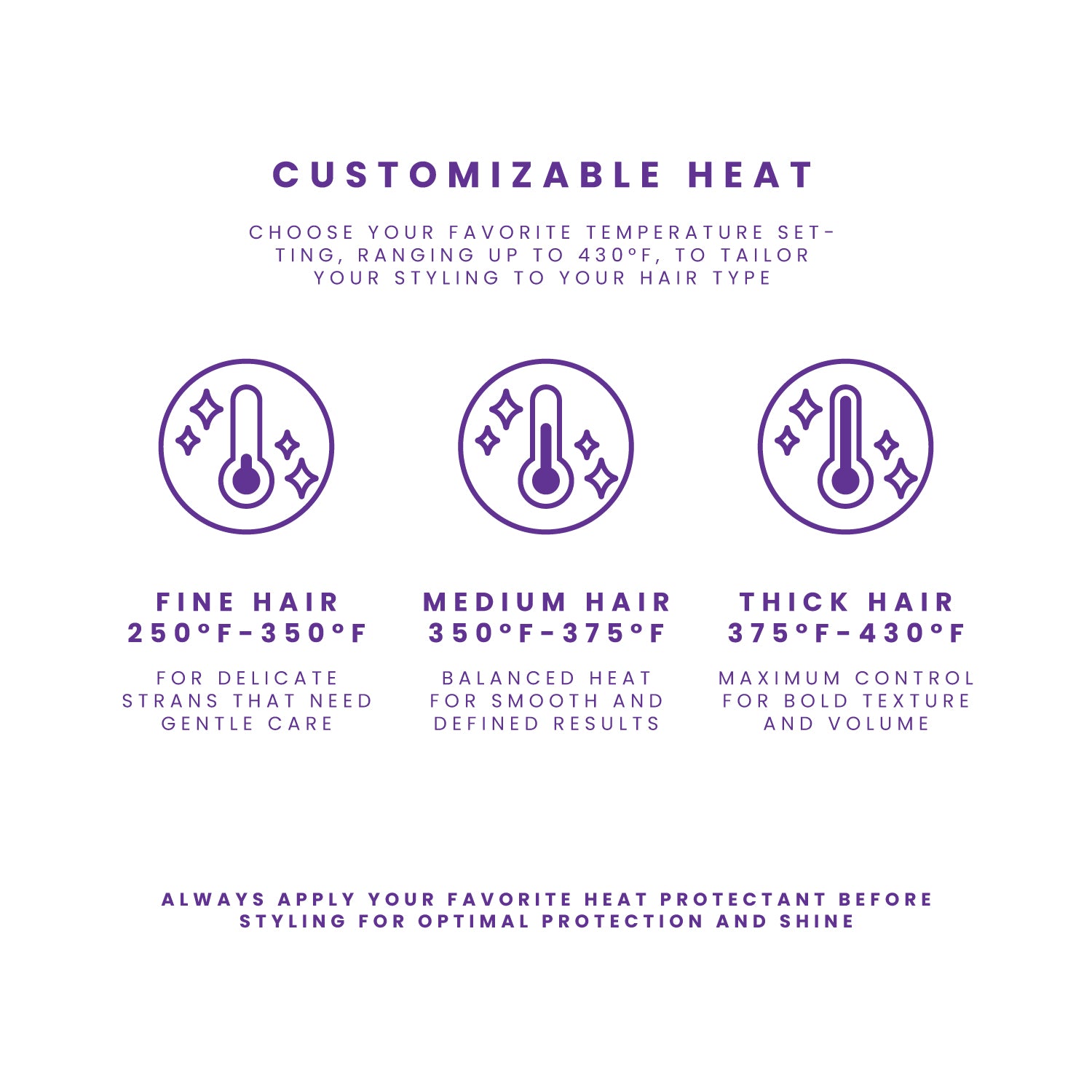 • Customizable Heat: Choose from 4 temperature settings, ranging up to 430F, to tailor your styling to your hair type.