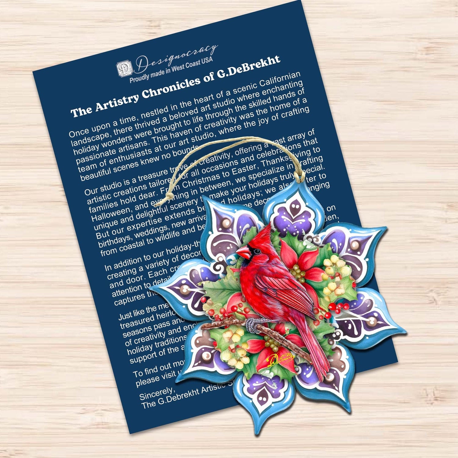About Collection: Discover our hand-crafted pop-out Ornaments, created with exceptional attention to detail. Inspired by traditional art techniques, these ornaments are made from premium Baltic Birch Plywood, ensuring durability and elegance. Perfect for your Holiday Home Decor or DIY projects, these ornaments add a special touch to the season. Collect timeless Christmas art, Winter Wonderlands, and Nativity scenes from our Artistic Studios, available in an approximate size of 3.5 x 3.5 x 0.125ƒ?. Packaged in a charming gift box, the ornaments easily pop out for immediate display. Lightweight yet sturdy, with a UV protective coating for indoor and outdoor use, these ornaments are proudly 100% hand-crafted in the USA.