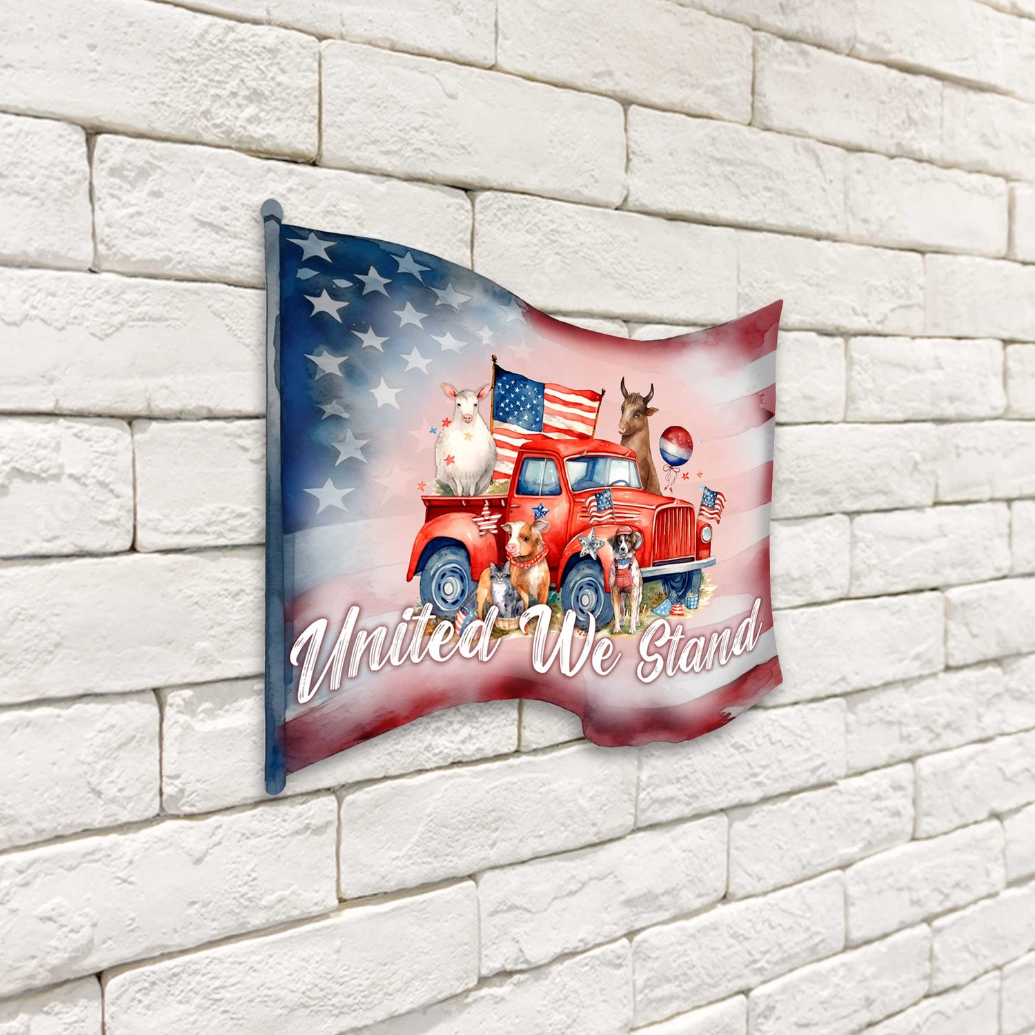Front door welcome sign American flag United we stand Front porch Patriotic wreath Main entrance banner Welcome sign - Wooden front porch decor - 933106H