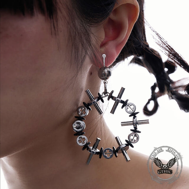 Crafted from high-quality titanium steel, these futuristic earrings are a unique addition to any jewelry collection. Their mechanical design adds a touch of industrial and modern aesthetic, making them a statement piece for any outfit. Durable and stylish, these earrings are perfect for those looking to add a bold and edgy touch to their look.