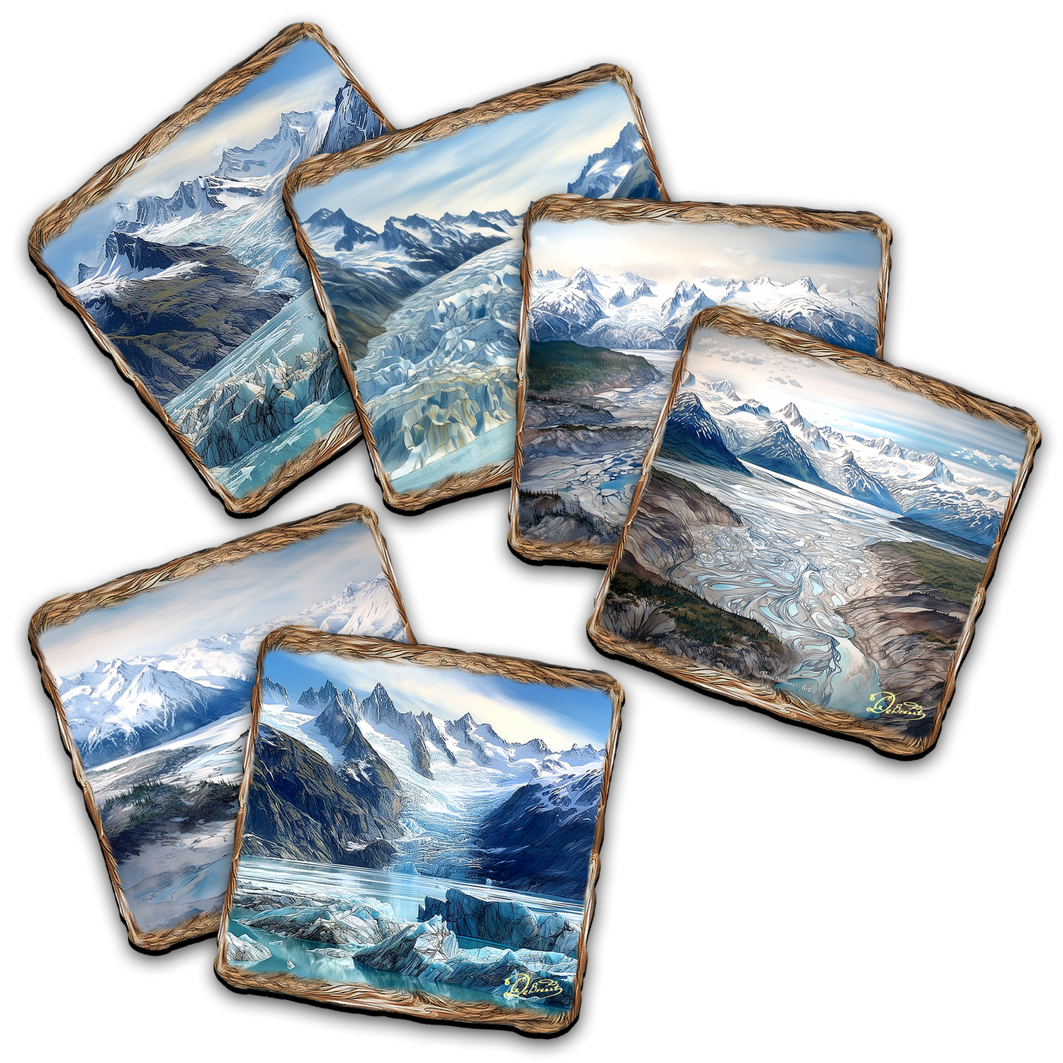 Add an elegant touch to your dining experience with the Glacier's Majesty Wooden Cork Placemat and Coasters Gift Set. Crafted from natural materials, this set of 7 features stunning glacier designs, adding a touch of nature to your table. Protect your surfaces with style and enjoy the beauty of the outdoors with this unique set.