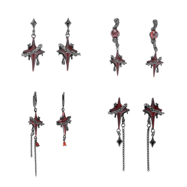Gothic Thorns Four-Pointed Star Alloy Stud Earrings