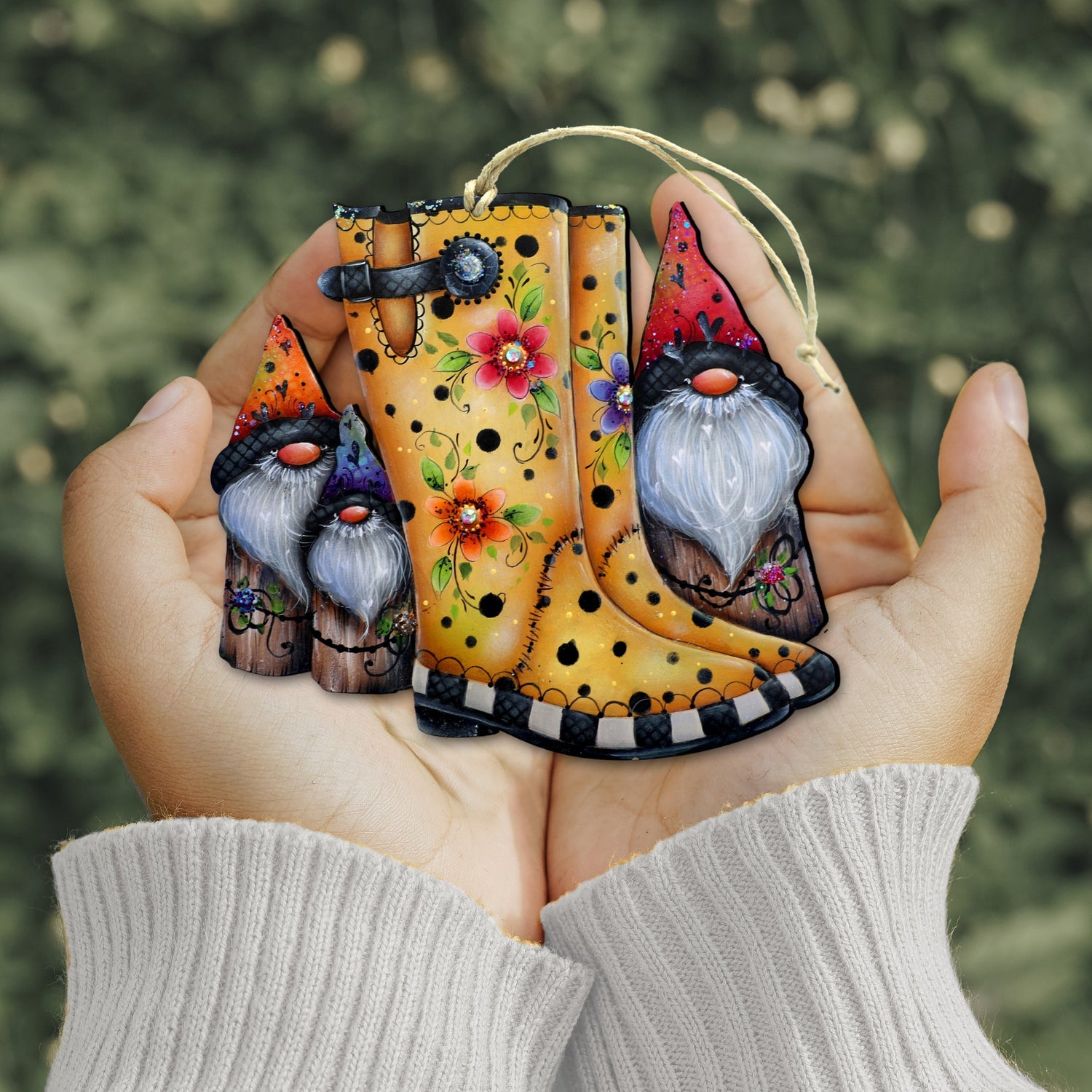 Celebrate the season with this wooden ornaments by J. Mills-Price. Featuring an Autumn-inspired design with charming boots and a "Hello Fall sentiment, these ornaments are perfect for bringing a cozy holiday feel to your home. Add some festive Thanksgiving Decor to your home with these delightful wooden ornaments.