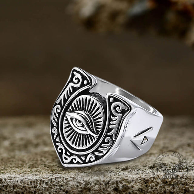 Horseshoe Eye Of Providence Stainless Steel Ring