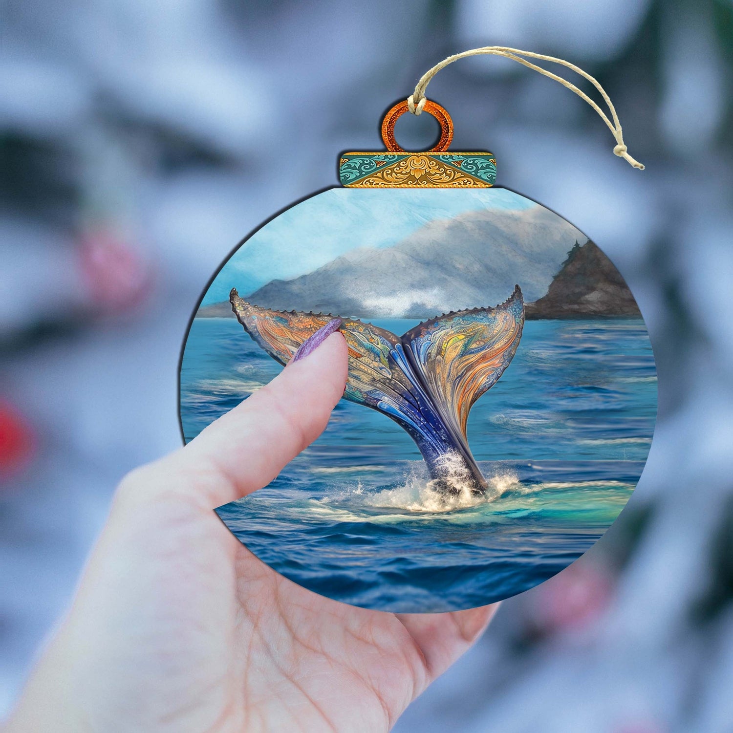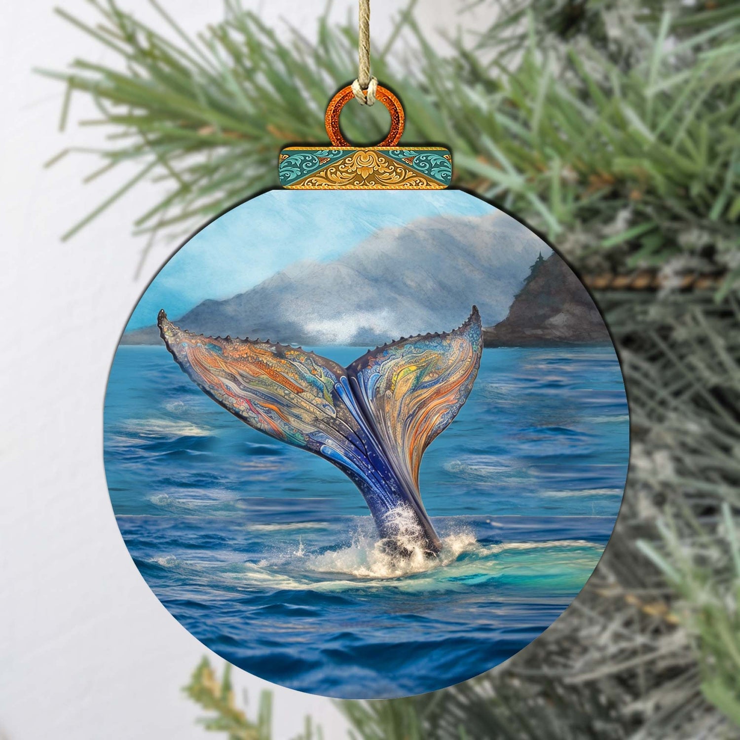 Iridescent Humpback's Tail Wooden Ornaments by G.Debrekht - Wildlife Holiday Decor - 870043