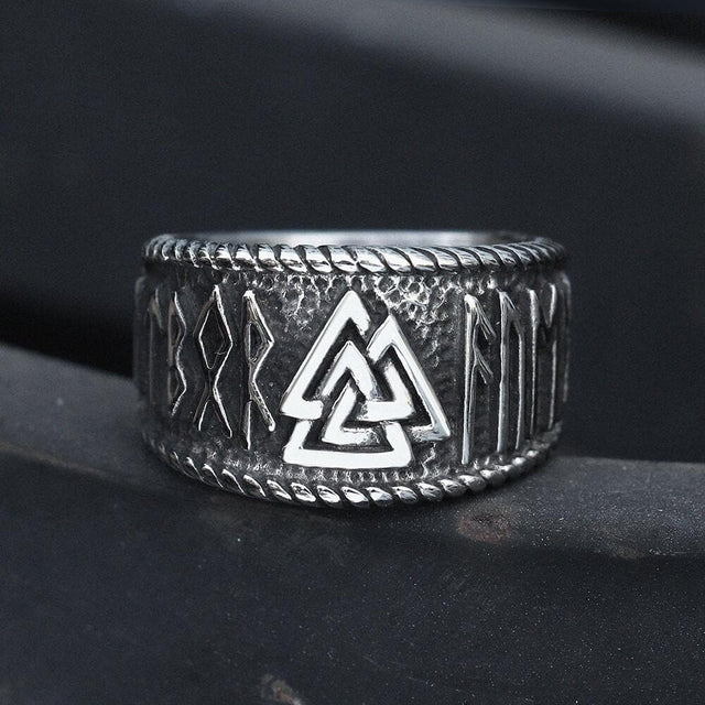 ODIN Runes Valknut 316L Stainless Steel Viking Ring