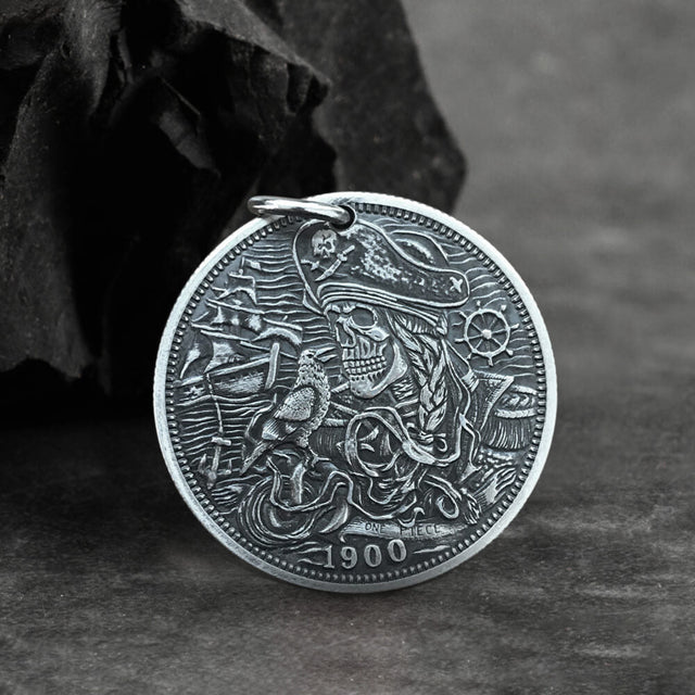 On the coin is one of the pirates looking for a legendary treasure (one place), and even if he becomes a skeleton, he has to go on a journey to conquer the sea in order to find the treasure. Around the skull, the skull pendant is decorated with ship anchors and compass. It is a cool pirate accessory, get yours today or give it to friends and family who love pirate jewelry.
